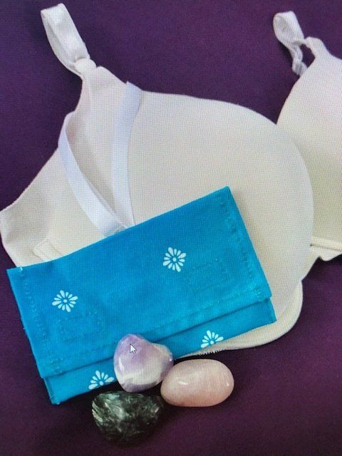 What I have discovered is that more and more people interested in the energy and healing powers of crystals and stones sometimes have difficulty keeping them safe from being lost or broken when carrying them. So I decided to create a comfortable pouch to keep them safe by attaching the pouch to an undergarment strap, a pocket, a purse or even a backpack.